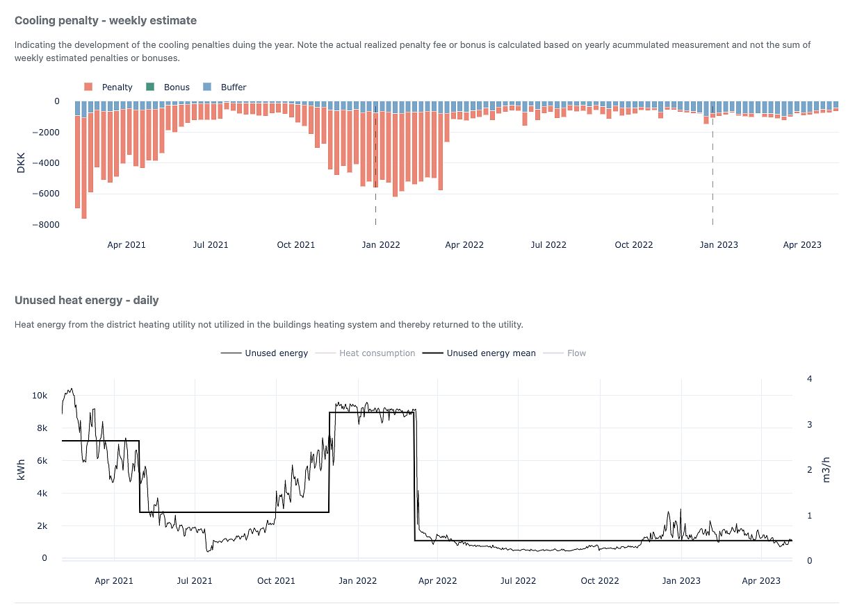 When you send water back to the DH company, there is a penalty fee if the water is too hot. This analysis gives you an overview of whether you are using all the heat you receive from the district heating company or if you are returning the water at too high a temperature.